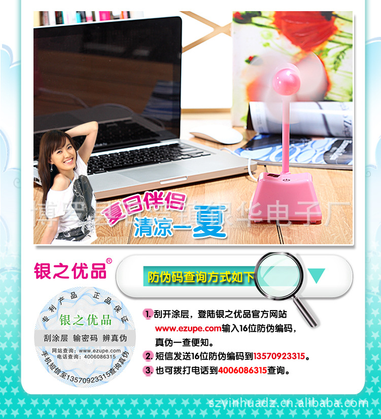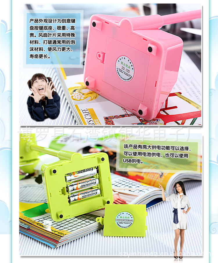1.产品采用260大电机,通常USB风扇使用130电机,比通常USB风扇的寿命和风力都提高50%,同时采用独特的静音设计