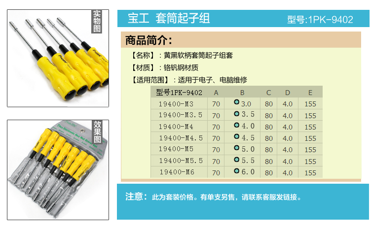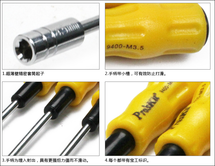 台湾宝工 黄黑软柄套筒起子7支组(3~6mm)1PK-9402套筒螺丝批
