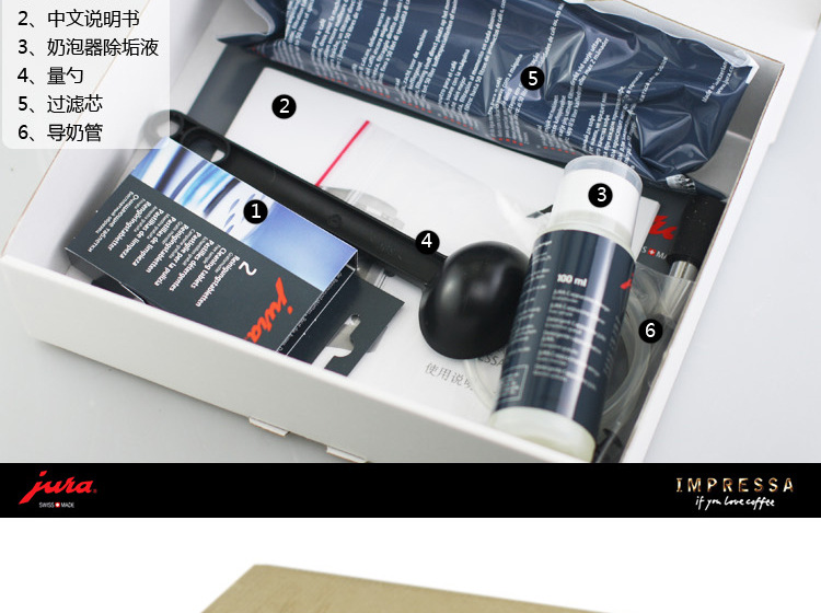 【商品特点】清晰的线条与优异材质所散发出的质感完美结合,加之设计师的灵感迸发,呈现在您面前的便是IMPRESSA J5,它精确地考虑到了每一个细节与其它部分的融合以达到审美的极致,简直称得上是美学的产物,这样的IMPRESSA J5被摆放在任何地方都那么光彩照人。四向调解咖啡喷嘴