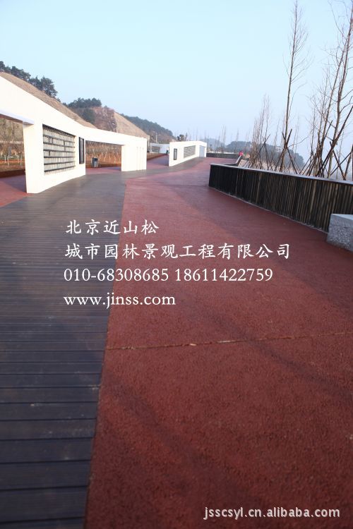 近山松透水地坪不同于以往的灰尘色的。钢筋混凝土路面工艺和原材料,采用不同粒径的骨料有利于解决灰尘堵塞混凝土空隙的问题,通过在专用添加剂中添加颜料可以改变混凝土颜色。具有装饰美化环境的作用;通过添加轮胎碎粒可以改变混凝土弹性,降低噪音;采用现场整体浇筑方式可避免透水砖铺装设施平整不易控制的问题,整体性好。改透水混凝土的应用对于提高环境保护意识的不断增强,透水地坪的应用将越来越广泛。近山松已经在全国范围内设立各级代理商,完善产品销售渠道,为产品的提供服务。在全国各地:北京、上海、山东、河南、山西、山西、湖北、湖南、两广都有工程,越来越多的城市在使用透水地坪路面,让透水路面美化我们的城市环境。