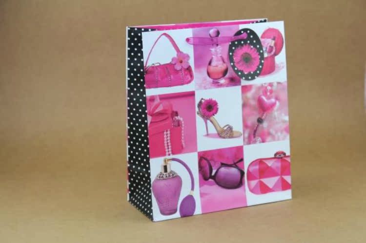 产品说明:此款是英国乐购超市专业设计师设计的礼品袋,此款采用157克环保铜板纸,水性环保油墨,全自动手提袋机一次成型,胶水则用环保热熔胶,具有不脱胶、不漏胶干净卫生无毒环保之特点, 提手则采用世界知名品牌三顶牌绸带,100%环保。