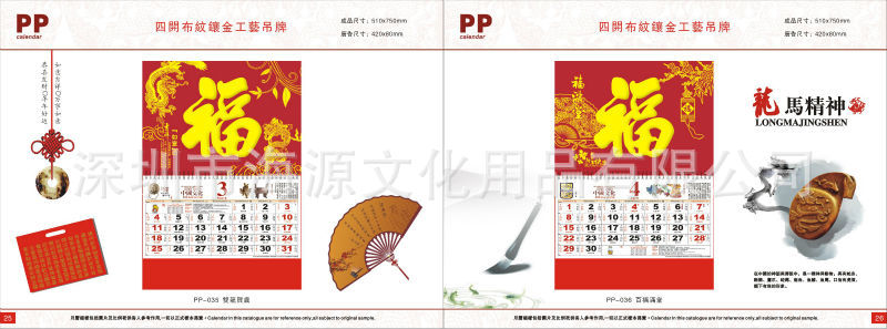 海源印刷有限公司是一家专业从事广告台历、挂历、礼品设计、定做、专业生产厂家,一条龙服务 界千余款的三角台历、商务台历、塑胶周历、大班台历,三开、四开、六开、国际开、特种工艺挂历 ,新工艺镀金、镀银二折、三折立体吊牌,福字系列吊历,广告福字对联等。 愿与各广告公司、礼品商 、印刷业通力合作、开创未来。专业生产2010年挂历,台历,吊牌,周历,撕历,塑料广告扇,立体吸塑等一系列广告促销礼品。订做专版三角台历,价格便宜,质量好。
