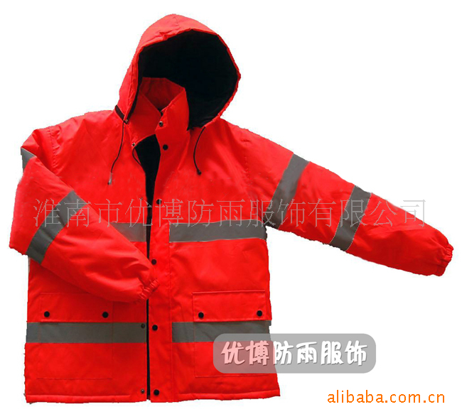 本品为防雨面料,加PU,PVC防水涂层,缝线处均采用电脑封胶工艺,进行防渗漏技术处理,狂风暴雨不湿衣。五公分高强度反光条,双层防沾身透气网格设计,暗藏式帽子,防盗防水口袋,休闲款式!