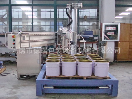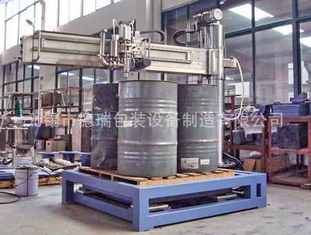 人工移动灌嘴,移动到桶口,定位,给启动灌装信号。