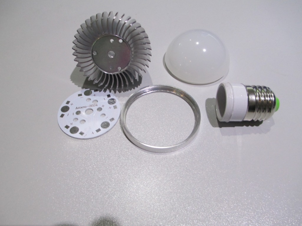 普通版5WLED球泡灯外壳 报价套件包含(铝件外壳+E27灯头+铝基板+PC奶白灯罩) 灯头和灯罩可根据要求配置(需要包装盒的另外配置)