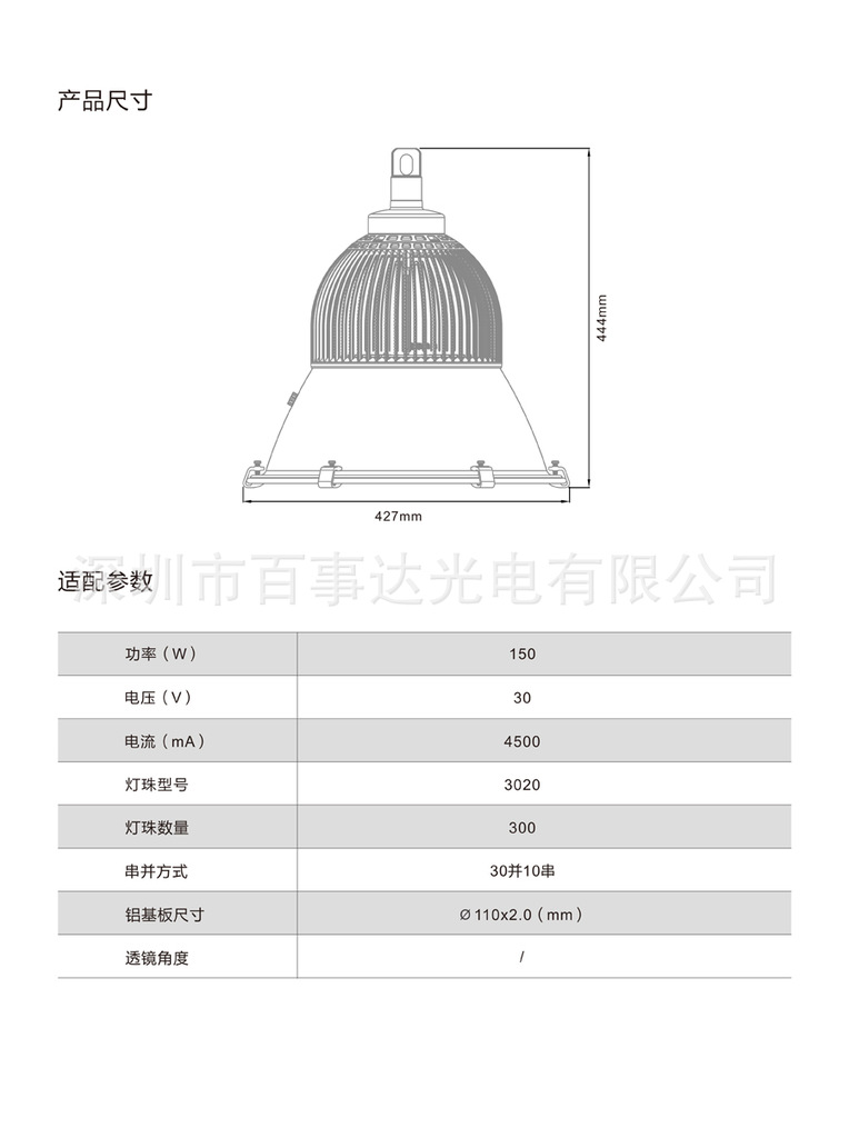 | 1,产品尺寸:Φ427x 444mm 2、散热体用1060纯铝片材,0.6mm x 60片 支持功率:150W ,传热导热效果好,采用扣FIN工艺,专利技术设计制造, 可兼容灯头:E40/E39。 3、鳍片工矿灯铝基板和散热体的接触面积加大且紧密接触无缝隙,减少了空气热阻,加快铝基板的导热速度。 4、每片鳍片有风孔,片片相连形成环形的空气对流通道,使体内高温沉热随空气对流或热沉泘而导出。 5、鳍片数量最低达到60片,与空气接触面积大,且通风对流效果好,测得比同功率车铝工艺的温度至少低8度,最高可低15度。 6、电源置于绝缘阻燃的环形电源盒内,符合安规检测,确保使用安全。上下留有空气对流孔,使电源产生的热量通过空气对流而扩散到空气中,降低电源内部温度,延长电源的使用寿命,确保灯具的使用时间。 7、用卡式结构装配,工艺简单装配容易,量产速度快,大大提高企业的工作效率。 8、灯体结构重量轻,只有车铝重量的60%——70%,电源盒内无需灌导热硅胶,在保证质量的同时减少企业的运输成本。 9、所有散热器的结构件已申请了多项专利技术保护(包括外形专利)。 |