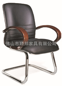 会议室 钢架弓字脚实木扶手软包座背的洽谈椅
