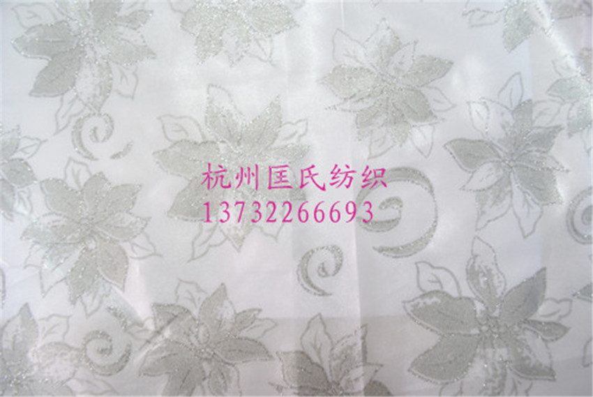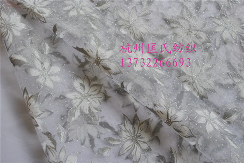 我司位于中国丝绸城——浙江杭州。 公司提供各种面料的台版印花加工、植绒加工、烫金加工、洒金印金加工等。 公司有大量的玻璃纱印花面料成品,产品广泛用于:礼品包装、舞台服装、鲜花包装、灯罩材料、玻璃夹丝材料等。