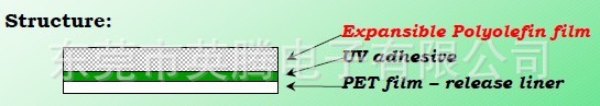UV剝離型晶圓切割用膠帶No.6360-15是以具有等方性伸拉特性的聚烯烴作為底基,塗布UV剝離型膠粘劑,再貼上剝離薄膜的膠帶。