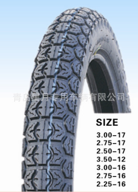 公司生产的摩托车内外胎型号:225/250-17,250/275-18,250/275-17,250/275-14,300-8,2.50-10,300-10,300-12,350-10,300-17,300-18,325/350-18,350-18,400-8,400-12,450-12,500-12,110/90-16,130/90-15。