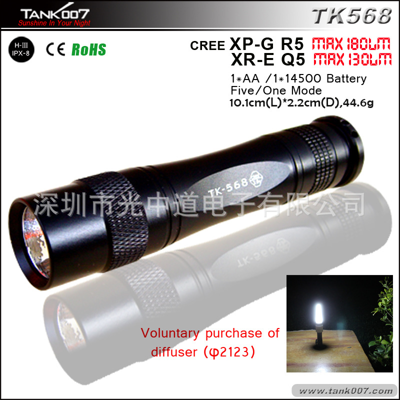 使用光源:CREE XR-E-Q5寿命为8万小时