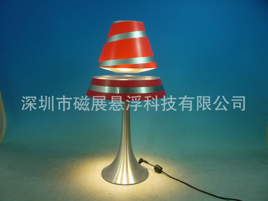 将产生磁悬浮的磁铁托盘放入灯罩中,通过磁力使灯罩悬浮在半空中