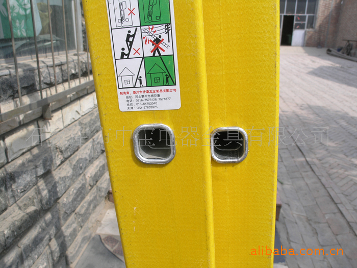 2、该绝缘人字梯为耐超高压玻璃纤维绝缘梯,玻璃纤维踩杆,特殊工艺制作。