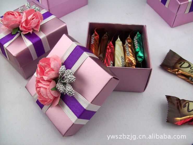 浅紫色方形喜糖盒