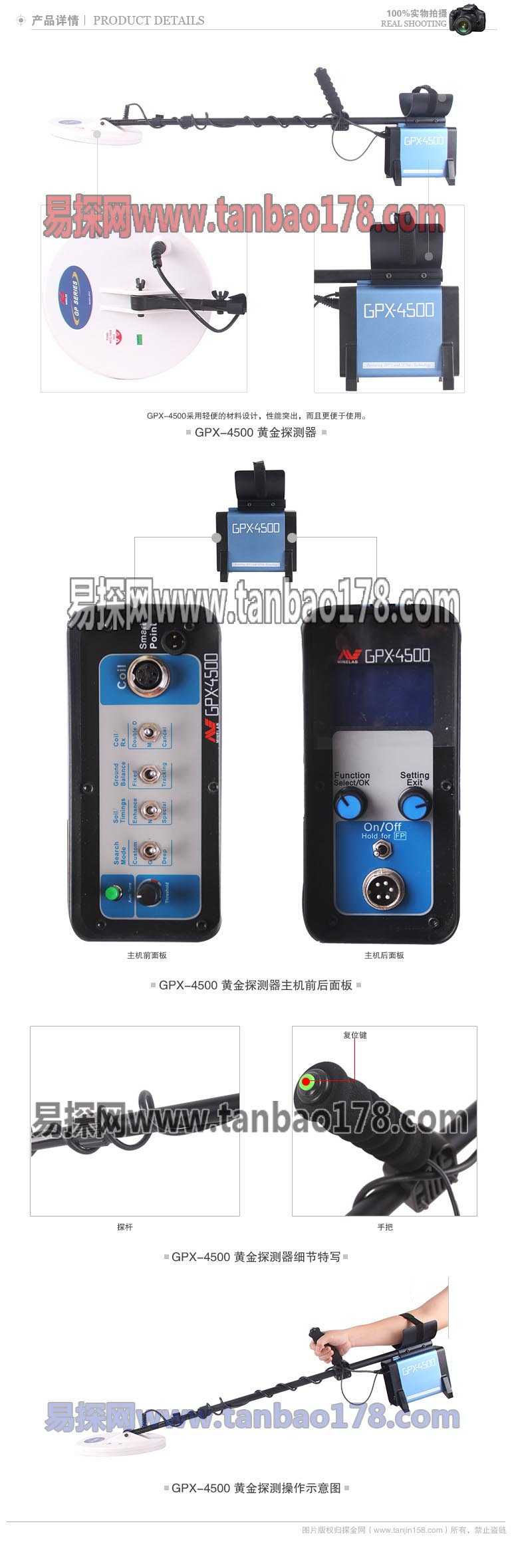 GPX4500黄金探测器 gpx4500是一款以探测黄金,砂金,颗粒金,狗头金为主的黄金探测器,也是无前市面上唯一一款能明确忽视地平衡从而达到对单一金属的正确报警区别黄金 白银的地下探测器,澳大利亚原装进口,非常好用,前提是别买到假的。真的都有防伪,有唯一编号。