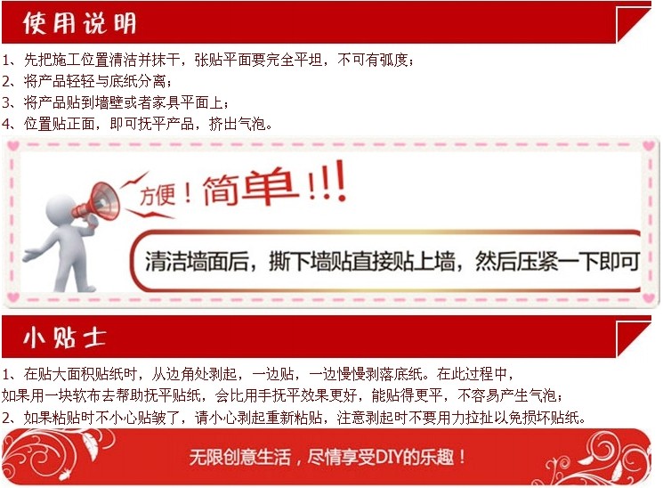 汇成墙贴.墙纸采用专业PVC胶面材料,突出优点是使用无毒增塑剂,耐磨,抗化学腐蚀,无气味。对家居软装专用的PVC不干胶自粘材料,符合国家100%环保标准,绿色、健康,色泽亮丽并且防水不褪色。我们有专业的团队,我们有研发设计者,主要有针对性客厅 卧室 儿童房软系列有独特的创意 ,用汇成品牌墙贴 会让您家居空间引领时尚。