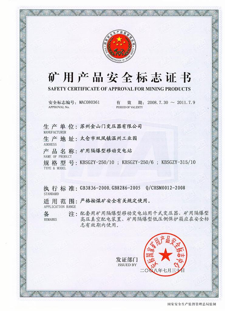 KBSG矿用隔爆型干式变压器符合GB8286-2005<<矿用隔爆型移动变电站>>标准的要求