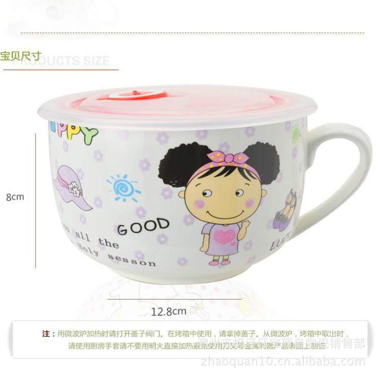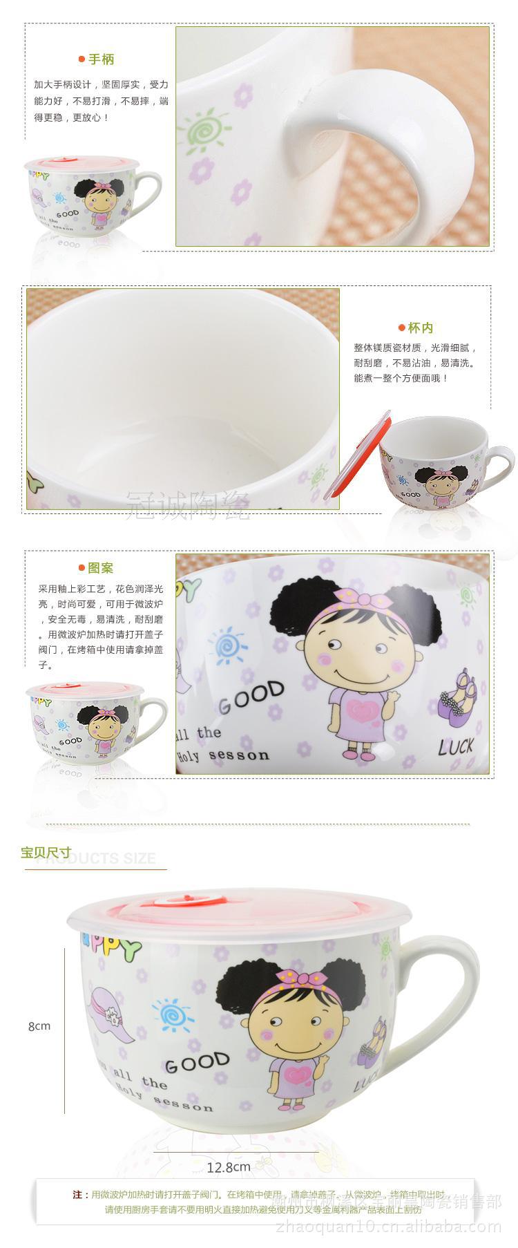 厂家直供 女孩陶瓷泡面杯 早餐杯 保鲜杯 密封杯 可定制LOGO