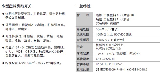 | | 带安装底板可方便的将脚踏开关安装固定在地面上或支撑平台上,提高操作稳定性。 |