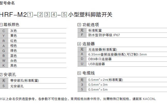 韩国凯昆KACON-小型方形塑料脚踏开关 HRF-M2C