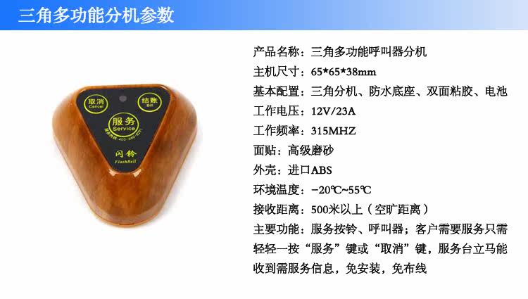 闪铃无线呼叫器餐厅 茶楼会所浴场宾馆工厂医院三角呼叫器服务铃