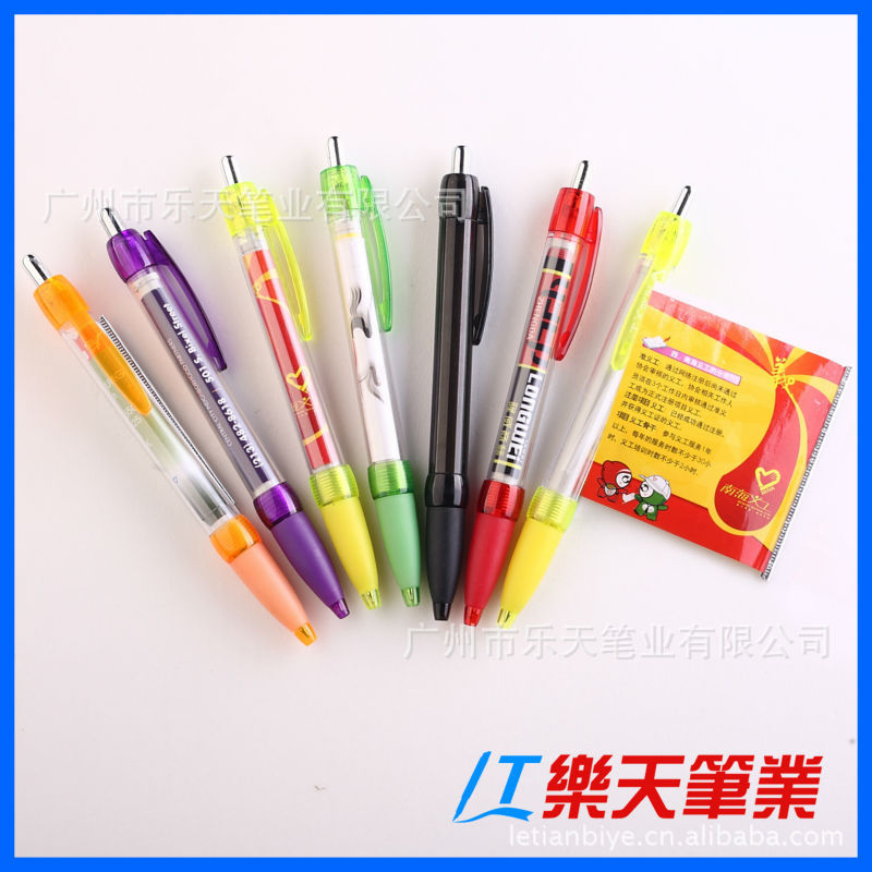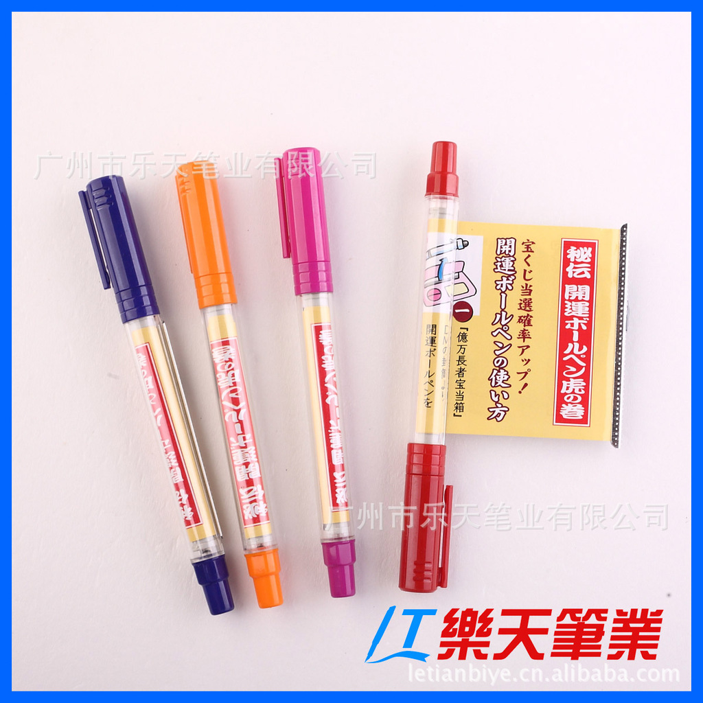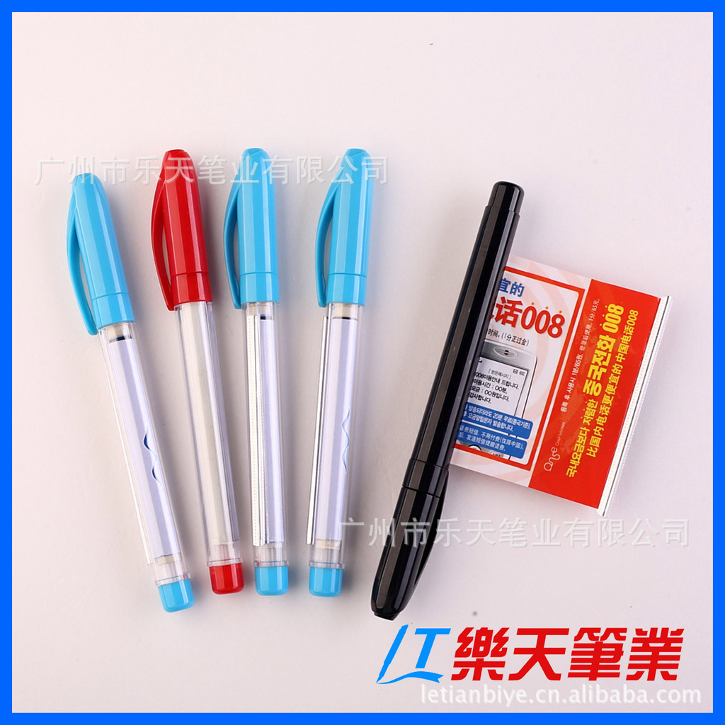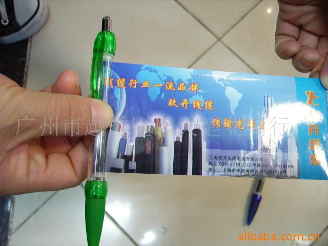 塑料笔:外贸包装;1支/OPP袋,50支/盒,20盒/箱 内贸包装:一支/opp小袋,100支/OPP大袋,2000或者3000/箱。05.交货期:一般10-25天具体要看量而定,最快一周可发货06.付款条件:签合同时先付30%订金,余款70%验货合格后付清余款发货。07.样品政策:样品费快递到付,下单后可退还。08.印刷费用:一万支以下一色200元印刷费(免版费)一万支以上含一万支一色0.02元/支(免收版费)。热转印激光等另议,