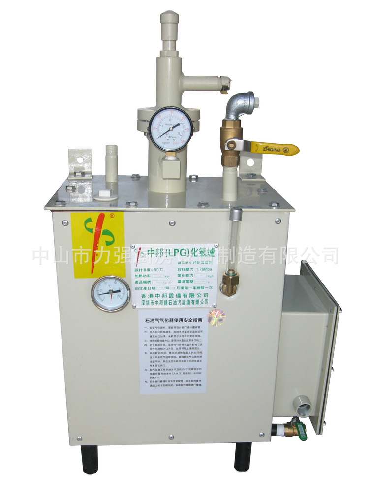 Gasifier (also known as: explosion proof vaporizer), is forced to gasification liquefied petroleum gas, ammonia liquid etc gas a device; it can solve the LPG liquefied petroleum gas cylinder large number residual and pipes frost freeze of phenomena, ensure continuous gas supply and gas supply pressure.Fit for businesses, schools and catering kitchen. With pressure reducing valve, pressure regulator,high pressure hose, pressure gauge,safety valve,alarm and other accessories to form a complete air supply system-gas room.