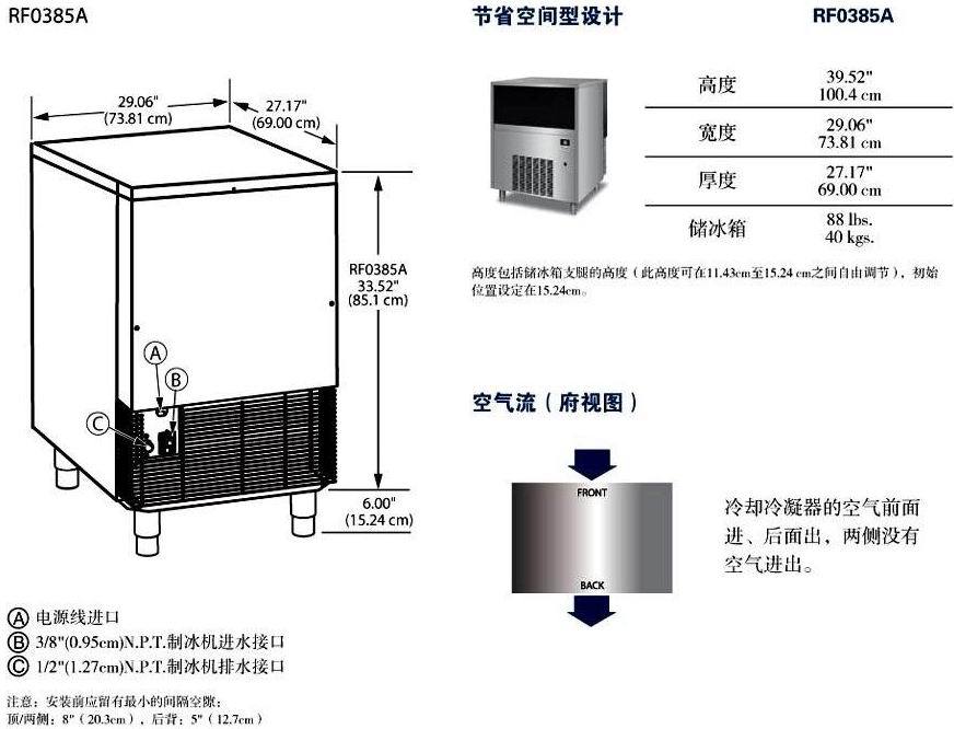 型号 Model | 类型 Type | 功率 Power | 电压 Voltage | 制冰量 Output | 储冰量 Ice Bin | 外形尺寸 Dimension(mm) | 冰形状 Ice Shape |