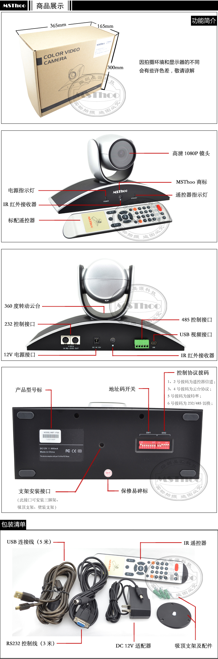 产品名称: USB接口 定焦高清1080P视频会议摄像机
