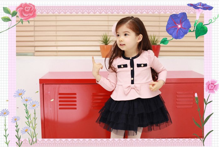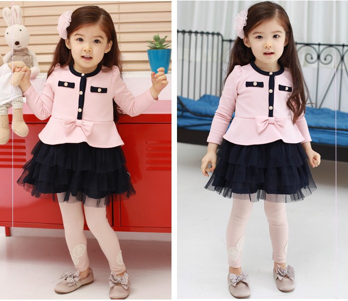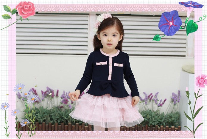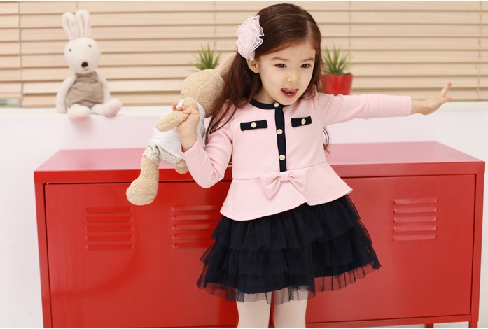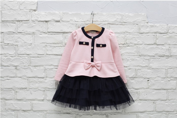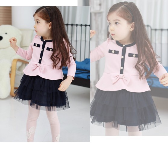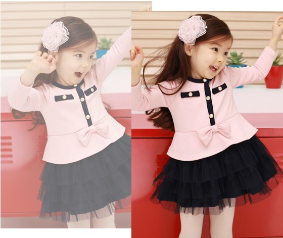 韩国童装儿童女童秋冬新款连衣裙淑女长袖纯色字冬款批发现货