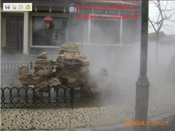 人造雾体现着人类文化与自然的融合,满足了人们期待回归自然的愿望和对美的追求。东荣公司人造雾系统所控制下的环境,是将滤净新鲜的水质,经由低压泵将水雾氧化漂浮于空气中,因此它可以很快的蒸发,高温时节快速蒸发的水雾可以使周围环境在几分钟内下降3~7℃左右,同时在周围形成一层轻纱状的云雾,防止空气中的灰尘及其他杂物,这些阵阵雾气能带动空气流动,随之带进新鲜氧气(含大量负离子),此时空气湿度呈现中温中湿,这些流动的空气加上新鲜氧气,理论上便可以抑制病菌入侵,达到环境控制的理想舒适度。雾化因此可以同时作为保湿、降温以及夏日消暑的多功能产品。由于喷雾形成特殊的云雾效果,可以为建筑以及园林景观添姿增色,现已成为建筑审计与景观设计中的宠儿。