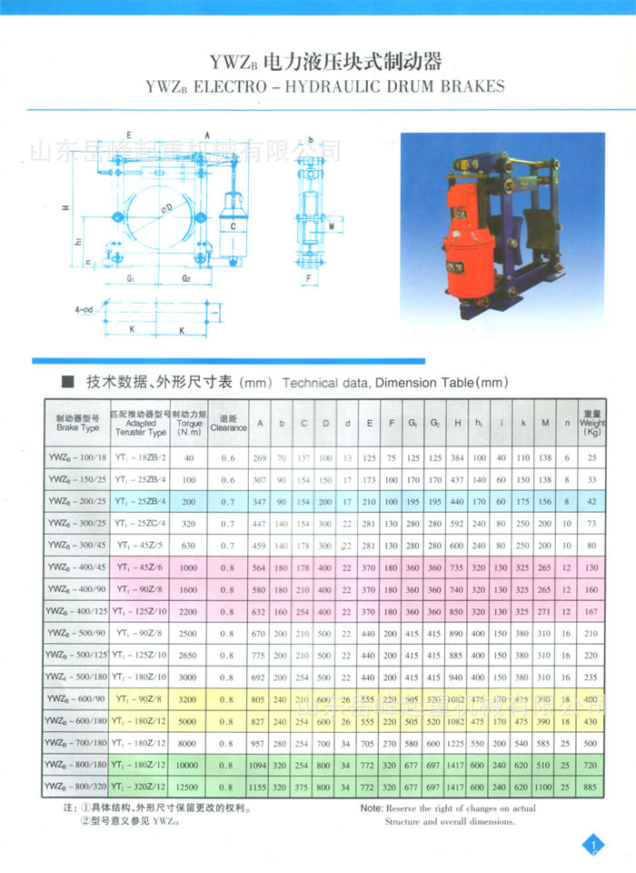 主要特点:主要摆动铰点均设有自润滑轴承,传动效率高,在使用中无需润滑。根据用户需要制动衬垫安装形式有两种:铆接式和插入式(订货说明)。使用条件:环境温度:-20℃~50℃。空气相对湿度不大于90%。周围工作环境不得有易燃、易爆及腐蚀性气体。使用地点的海拔高度符合GB755-2000。户外雨雪侵蚀或有腐蚀性气体和介质应采用防腐型产品。符合标准:安装尺寸符合JB/ZQ4388-1997标准。