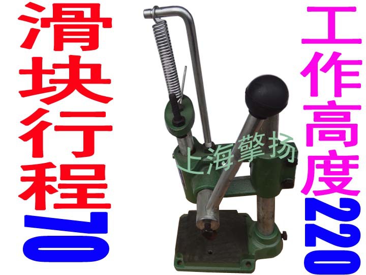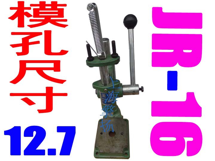 JR-16圆头形手动压力机 特点与说明: 滑块行程 70mm 工作高度 220mm 滑板中心至机心距离 105mm 模架孔尺寸 ¢12.7mm 工作台尺寸(长×宽) 110mm×130mm 外型尺寸(长×宽×高) 150mm×220mm×360mm