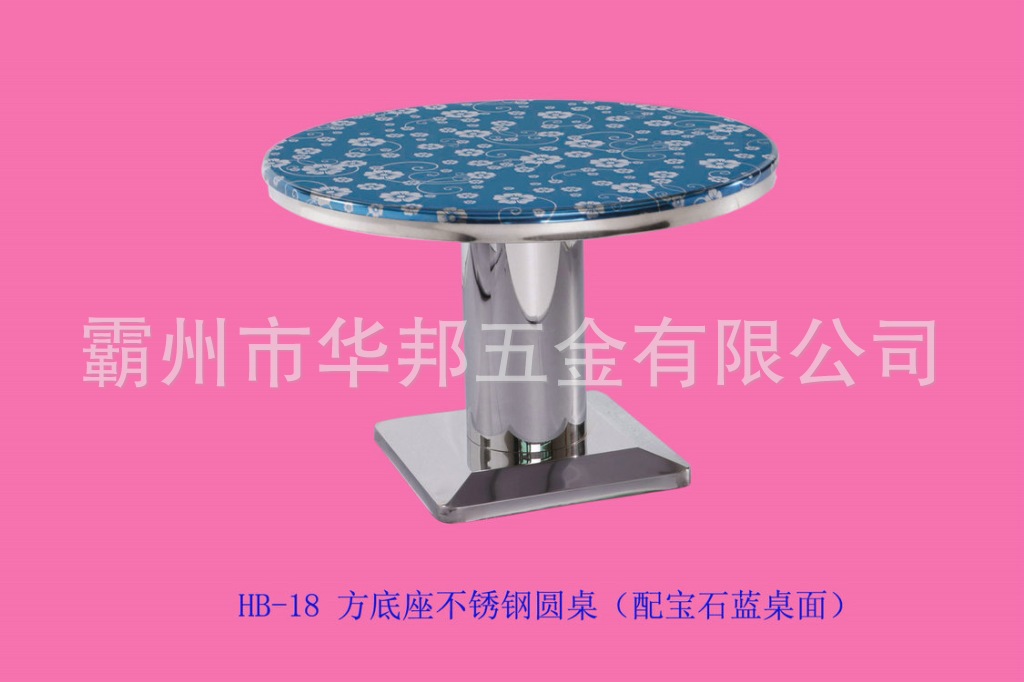 | HB-18 | 49 | 650×650×100 φ1130×50 φ290×620 φ1160×28 | 纸箱包装 膜包装 纸板包装 纸板包装 | | 方底盘不锈钢桌配宝石蓝桌面(1200#) |