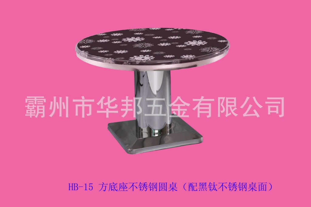 | HB-15 | 49 | 650×650×100 φ1130×50 φ290×620 φ1160×28 | 纸箱包装 膜包装 纸板包装 纸板包装 | 968 | 方底盘不锈钢桌配镀黑钛桌面(1200#) |