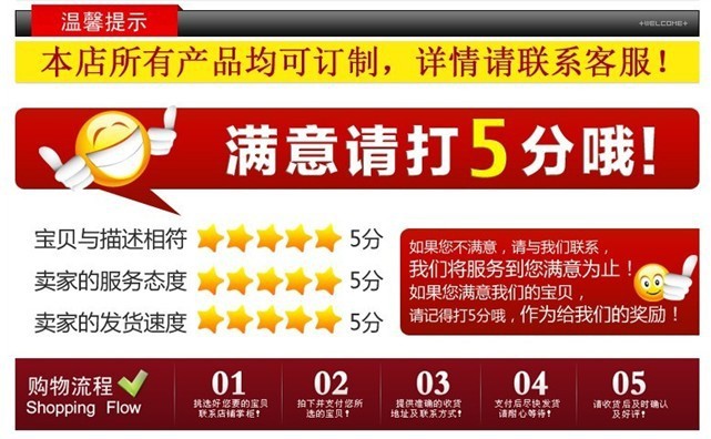 快递声明:本店默认发圆通速递,请买家自己查看是否能到,广东.上海.江苏.浙江地区一般2天到,其他地区3-5天到。我们只保证发出时间,因为快递派件我们没法控制,希望亲们理解。