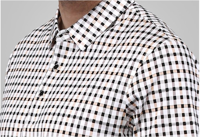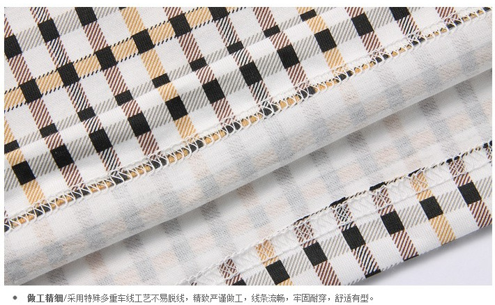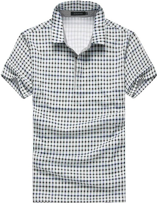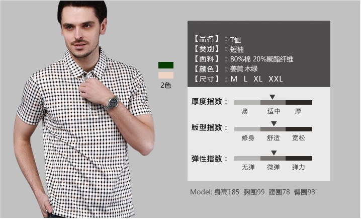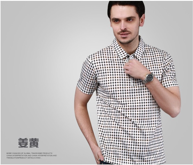 男装短袖T恤翻领经典格子印花丝光棉t恤Tshirt柔软高端商务