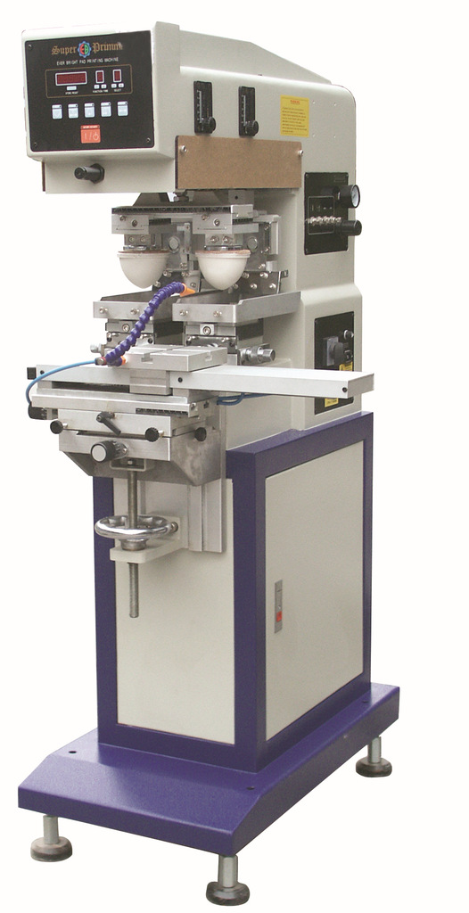 1 双色移印机,采用气缸穿梭输送工作台。 2 微电脑控制各功能动作,操作简单方便。 3 内设五位数自动记数器。 4 机器架构采用优质铝合金,质轻坚固。 5 油辊上墨,装拆和清洗方便。 6 设有安全防护罩,符合安全要求。 7 自动平衡之油刀,刮油干净利落。 8 各位置停留时间可调,以满足不同的印刷要求。 9 可以两次粘墨移印一次,以便获得较大的印刷油墨。 10 可以前后空行不落胶,防止稍停时油墨干固。 11 可印双色、单色,可谓一机多用。 12 具有自动吹气风干的功能。 13 每把刮刀可独立调校高低,保证每块钢板都刮干净。