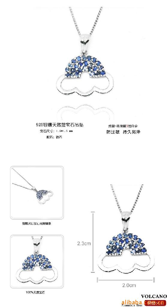 名称:易燃火山925银镀白金天然蓝宝石吊坠SP0282S