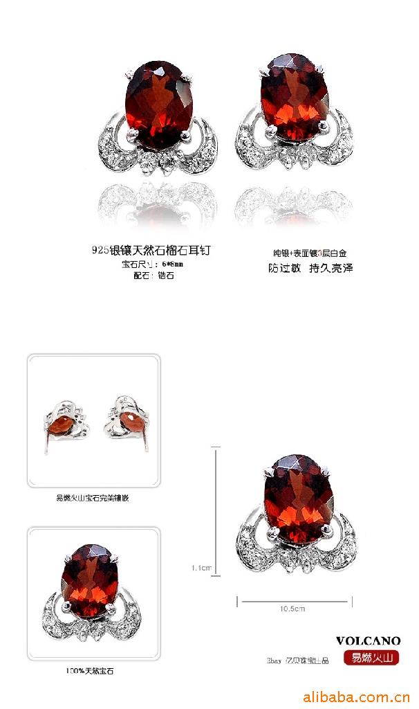 易燃火山珠宝首饰饰品 925银天然石榴石耳钉耳饰SE0005G