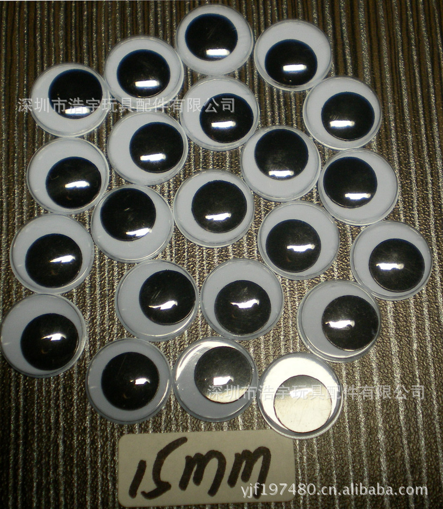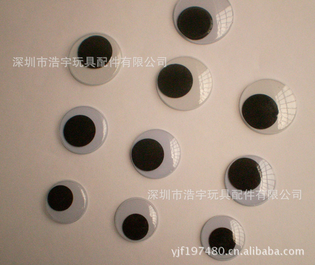 款式:黑白活动眼睛、彩色活动眼(白底彩珠、彩底黑珠)、夜光活动眼睛、自粘活动眼睛、钮孔活动眼睛,活动眼贴纸、印刷眼睛、卡通眼睛、带背胶活动眼睛、螺丝活动眼睛、印睫毛活动眼睛、椭圆活动眼睛