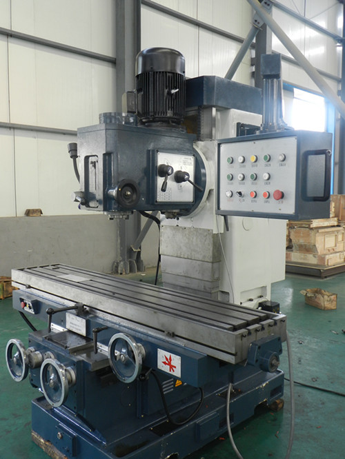 领超X7150床身铣床是我公司根据普通铣床受行程限制,稳定性不好,动力不足等问题而自行设计研发的超大行程(1400*500),超大动力(主电机11kw),自重大(净重4900KG),载重大(一体加强铸铁床身),稳定性好(高频淬火矩形导轨)的床身式铣床!
