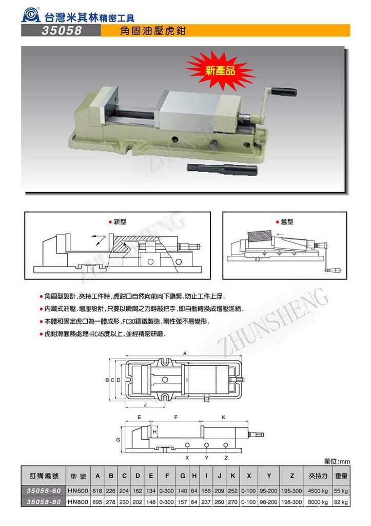 虎钳滑面处理HRC45度以上,亦经精密研磨