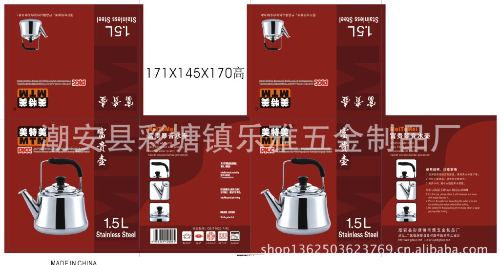 5、水壶外部采用高级镜面抛光,产品长期使用不退色;内部采用电化技术,水垢不易附上,清洗更省心。