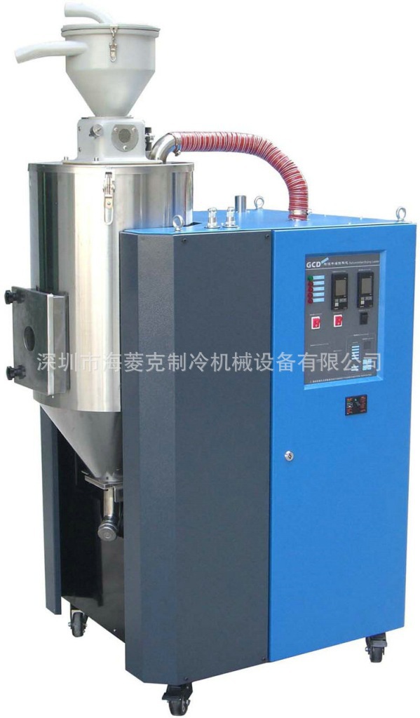 1、 集除湿、干燥、二段送料三种功能于一机,全不锈钢双层保温干燥料桶采下吹式设计,防止热能