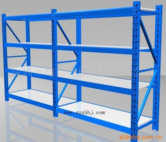 货架采用蝴蝶孔扣接式结构,拆装方便,层间距可依据货物高度以每75mm为单位上下调节,其承载范围200—500Kg。层板可以选用钢板,木板,中密板等材料。此种货架高度适宜,方便人工存取货物,是最佳中小型仓库的理想产品。