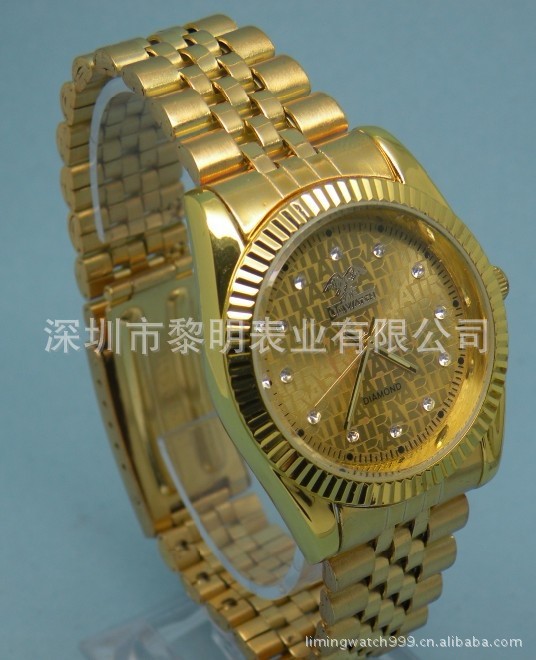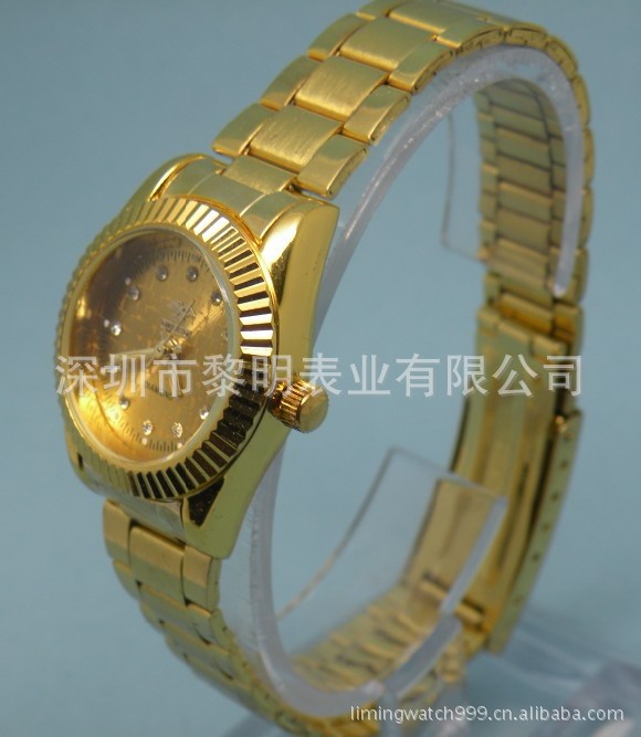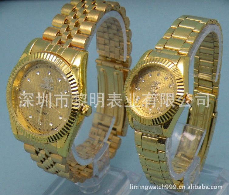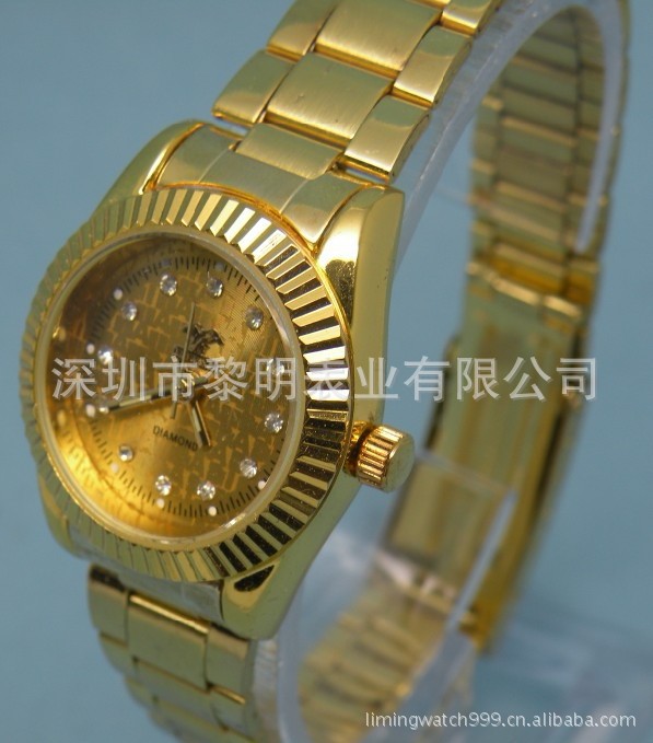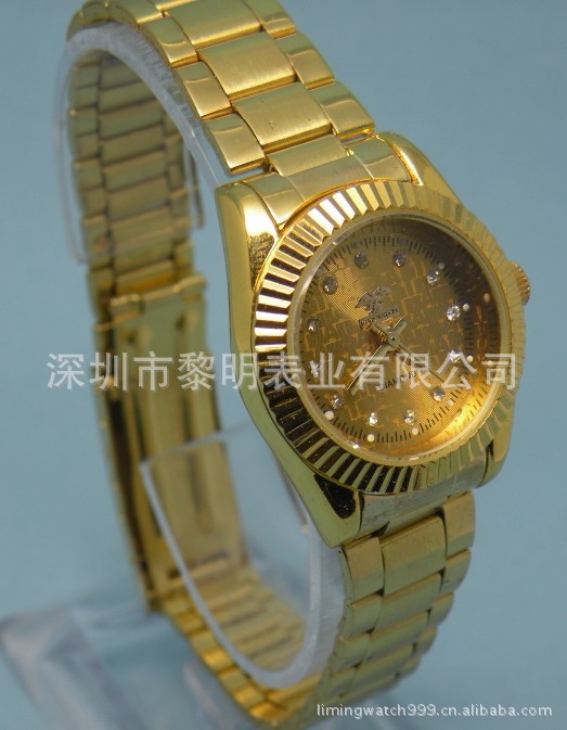 镀金手表上的镀金层大多是14K金,这种黄金除含有58.5%的纯金外,还含有一定数量的银。银和空气中的一些挥发性工业废气发生反应后,在表面上会产生一层黑色的硫化银膜,从而使镀金手表失去黄金色的光泽。因此,戴镀金手表要避免接触化学物质和废气,如煤气、液化气和硫磺香皂等,并要经常保持镀金手表的干燥和清洁。最好每周用绒布擦拭一次。另外,汗水中的氯化物对镀金手表有很大的腐蚀性,镀金手表沾上汗水时应及时擦拭干净,以免汗液浸蚀使手表失去原有的光泽。镀金手表时间长了金色都会正常磨损,镀金手表的镀金层是由金,铜、锌、铝合金组成的一层金属膜,如果保养不好很容易褪色失去光泽。在佩戴镀金手表前,应将表壳用干净软布擦拭干净,并均匀地涂上一层无色指甲油,干后再戴,以后每隔1~2个月涂1次。经过这样的处理以后,不但可以保持镀黄手表的色泽,不被磨损,而且还可以增加其外表光亮度,同时在炎热的夏天还可防止汗水及水气侵入表内