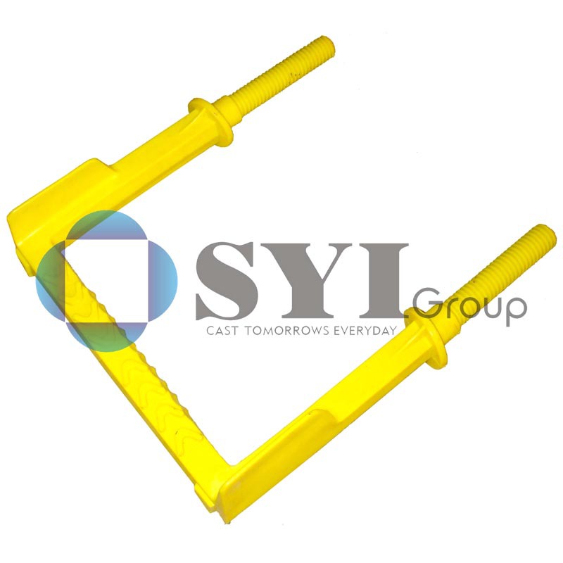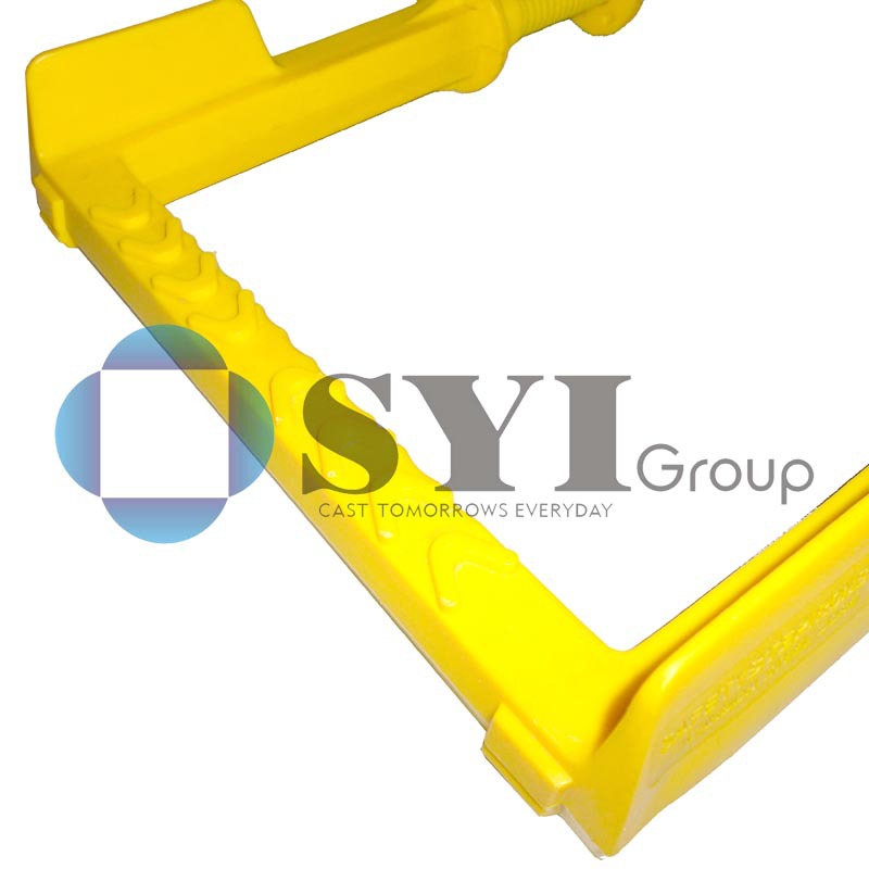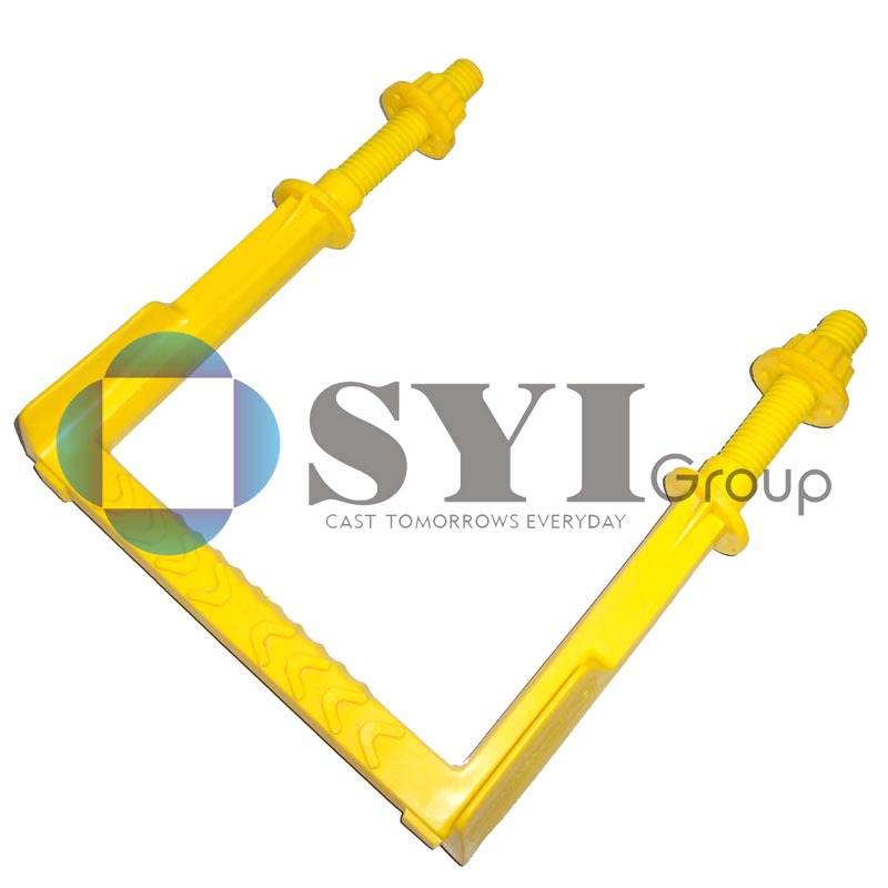 梯杆宽度非常适合人脚的踩踏。档脚可以保证人脚侧向位的安全的保护,梯杆上的防滑花纹设计,使的人脚在踩踏时更安全。粗细适中的梯杆使人手在抓握时比较容易借力,包塑层表面也使人手感觉更舒服。梯杆可按照人体踏步的合适间距,均匀的布置在井壁上,使作业人员的上下更安全可靠。梯杆埋入水泥部分采用了防脱设计,使梯杆可以牢固的固定在水泥制成的井壁上。定位凸台可以准确的标示出梯杆的安装位置。