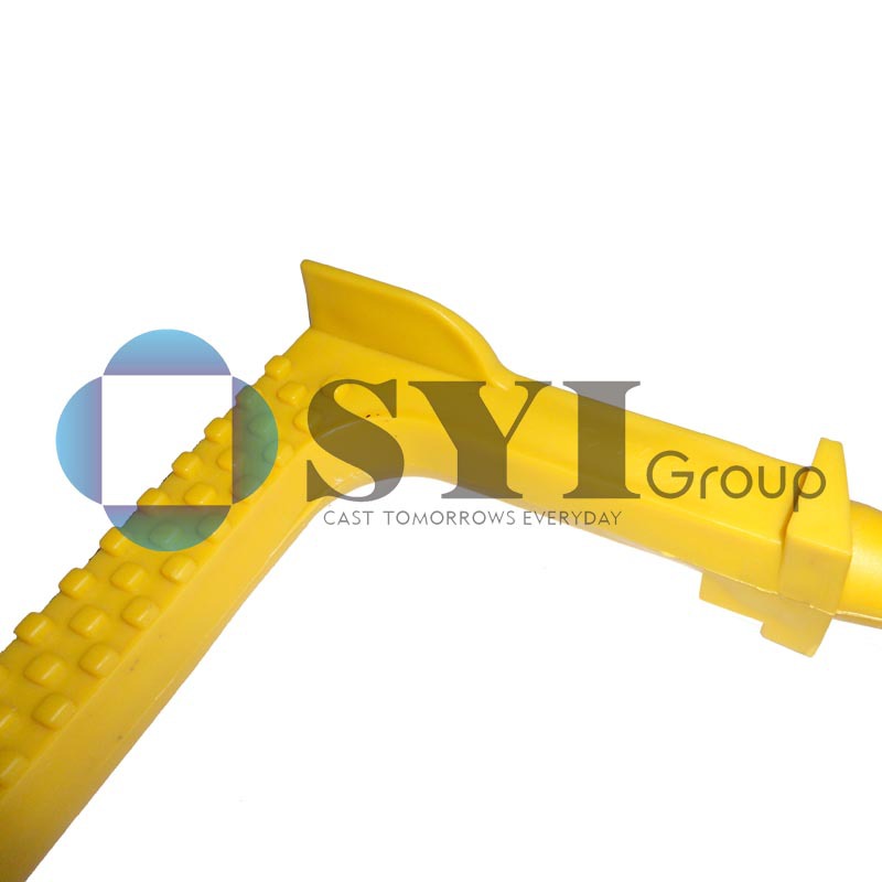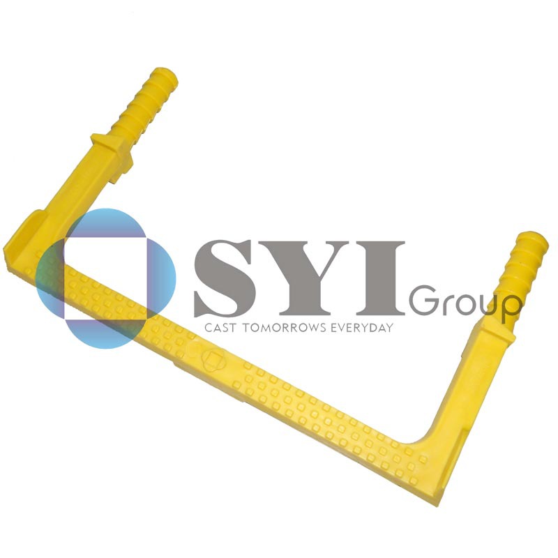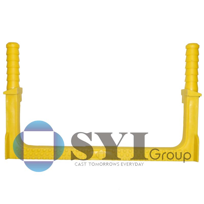 梯杆宽度非常适合人脚的踩踏。档脚可以保证人脚侧向位的安全的保护,梯杆上的防滑花纹设计,使的人脚在踩踏时更安全。粗细适中的梯杆使人手在抓握时比较容易借力,包塑层表面也使人手感觉更舒服。梯杆可按照人体踏步的合适间距,均匀的布置在井壁上,使作业人员的上下更安全可靠。梯杆埋入水泥部分采用了防脱设计,使梯杆可以牢固的固定在水泥制成的井壁上。定位凸台可以准确的标示出梯杆的安装位置。
