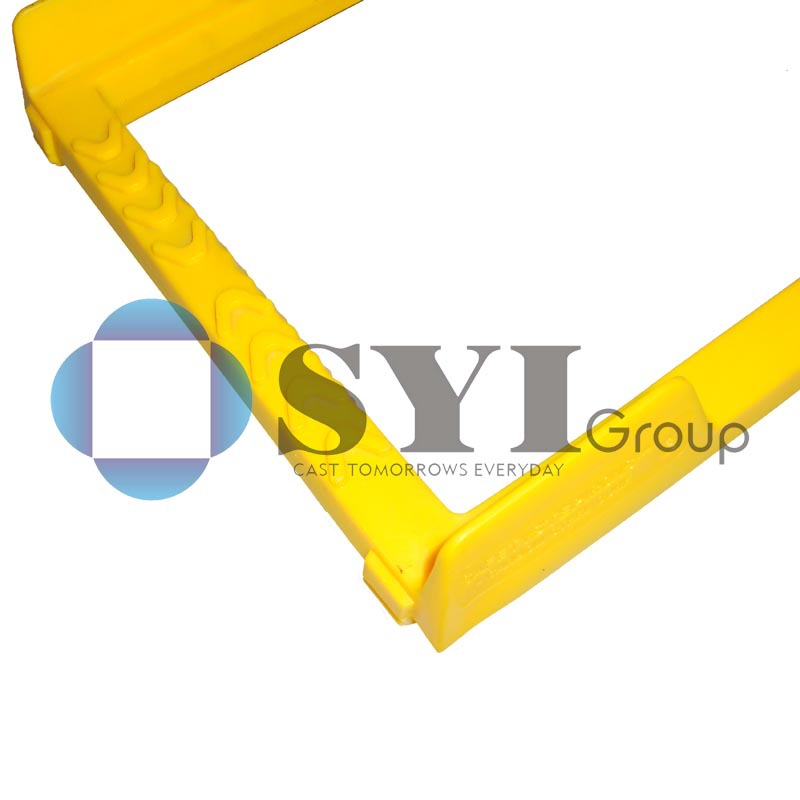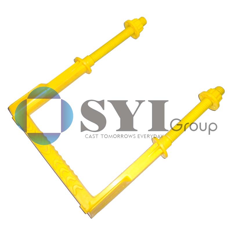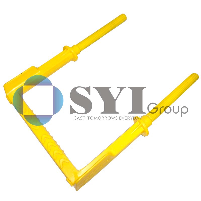 梯杆宽度非常适合人脚的踩踏。档脚可以保证人脚侧向位的安全的保护,梯杆上的防滑花纹设计,使的人脚在踩踏时更安全。粗细适中的梯杆使人手在抓握时比较容易借力,包塑层表面也使人手感觉更舒服。梯杆可按照人体踏步的合适间距,均匀的布置在井壁上,使作业人员的上下更安全可靠。梯杆埋入水泥部分采用了防脱设计,使梯杆可以牢固的固定在水泥制成的井壁上。定位凸台可以准确的标示出梯杆的安装位置。